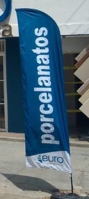 Banderas tipo gota o vela, tambien banderas rectangulares para nuevos proyectos de construcción.